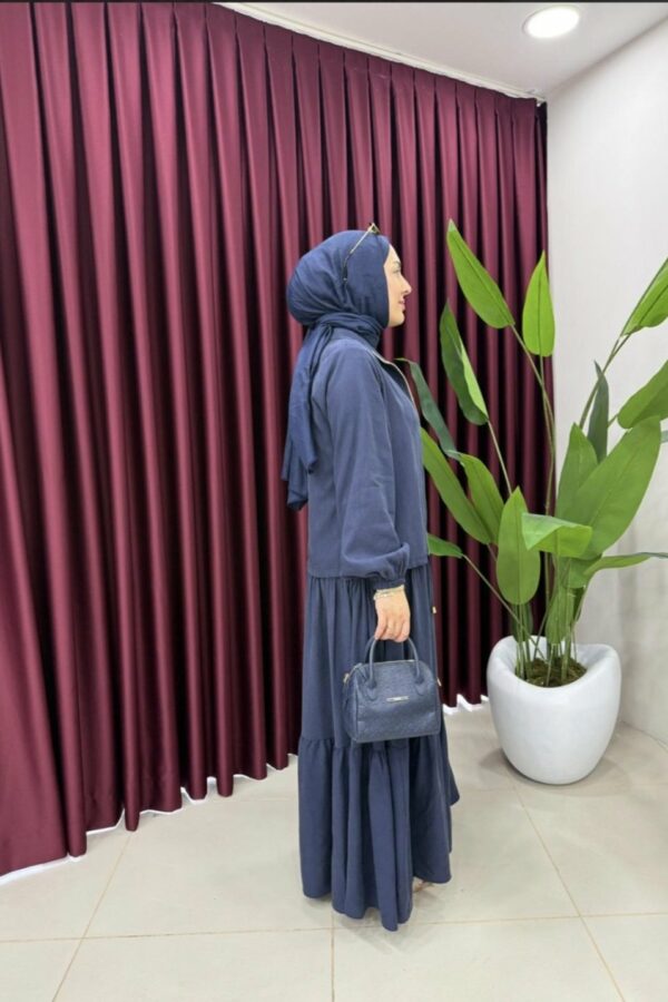 La robe longue (140 cm) est sublimée par ses volants superposés pour une allure féminine et légère.