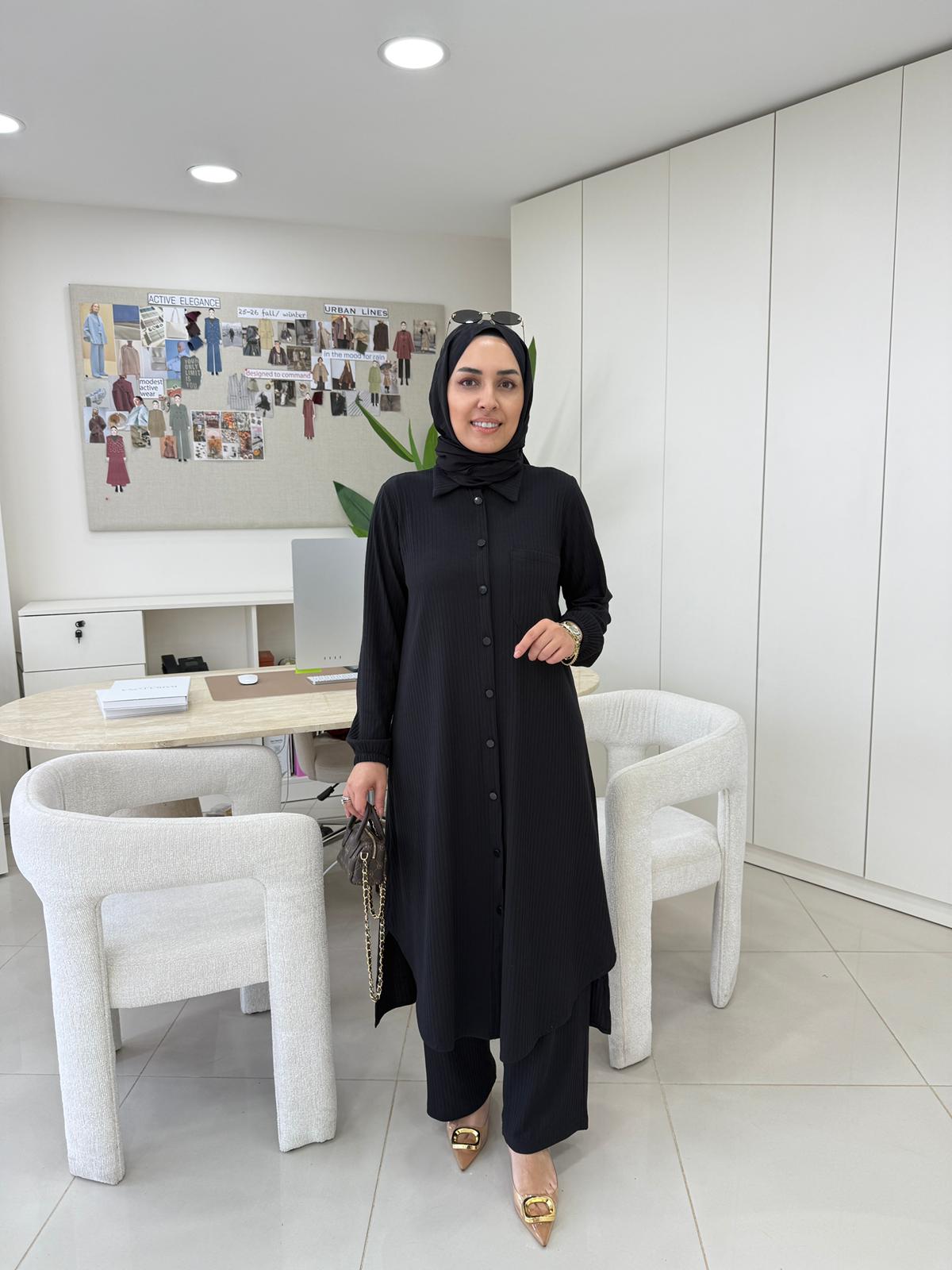 Tunik ön boy 115 cm, arka boy 120 cm’dir.
