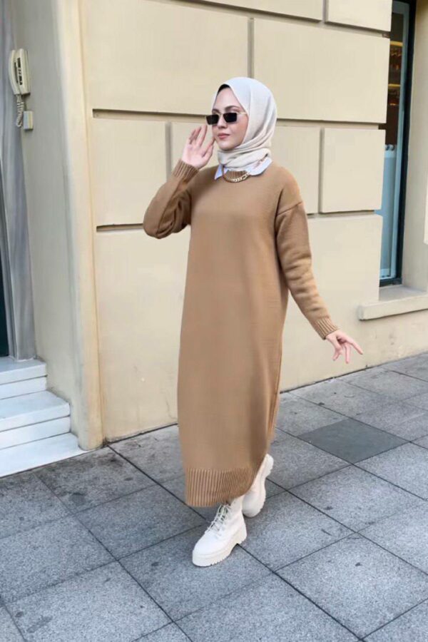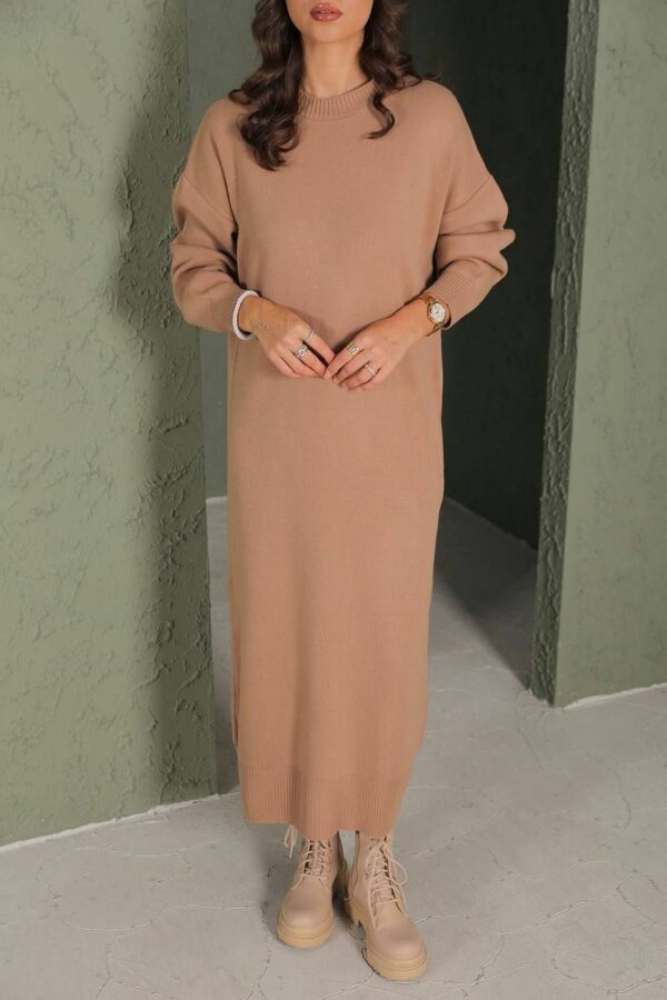 Robe tricot beige foncé – Taille unique